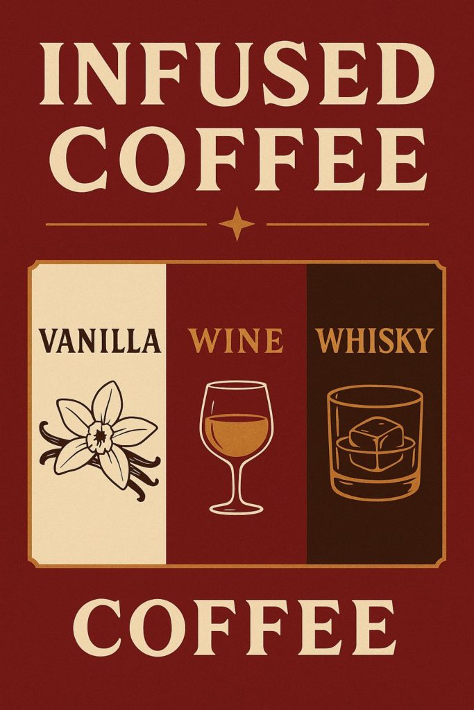 樽・果実・スパイスなど “外からの香り” と一緒に寝かせ、奥深いアロマをまとわせた特別な製法のコーヒーです。